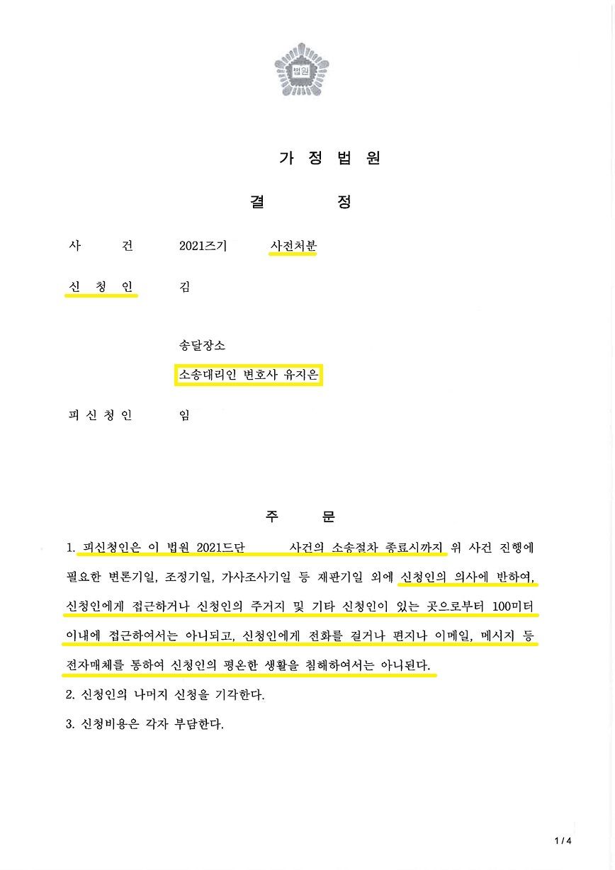 남편은 이혼만은 절대 안된다며 분에 못이겨 의뢰인에게 폭력을 행사하였고, 이에 저희는 서둘러 접근금지 사전처분을 신청하였습니다.