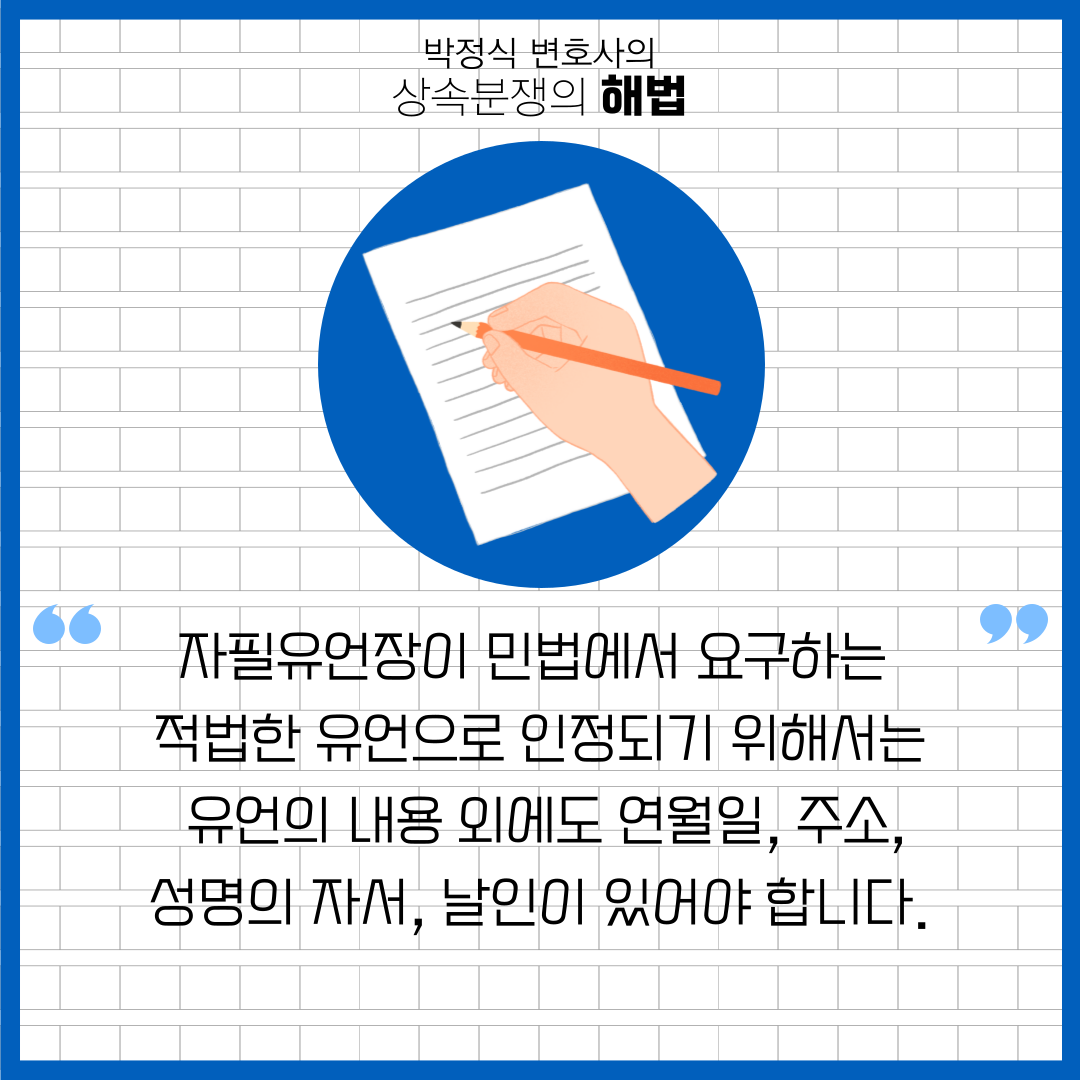 관련글: 자필유언장을 발견한 경우 자필유언장 검인신청 및 유언집행절차 (https://www.lawtalk.co.kr/posts/43724)