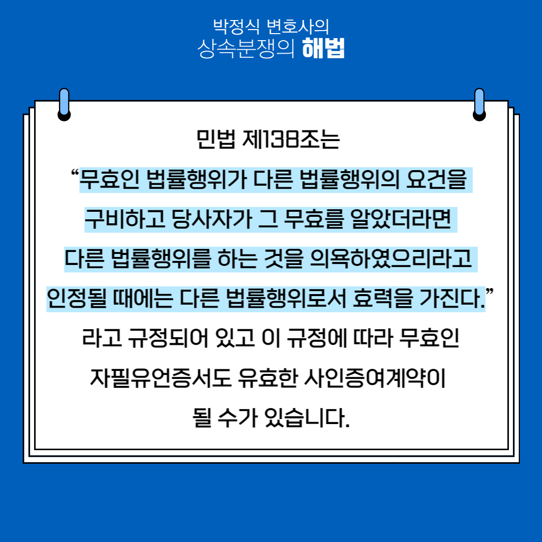 ![[상속전문변호사] 사인증여소송과 자필유언증서의 관계](/_next/image?url=https%3A%2F%2Fd2ai3ajp99ywjy.cloudfront.net%2Fuploads%2Ftitleimage%2Foriginal%2F5c343eedbfec828770492226-original.jpg&w=3840&q=75)