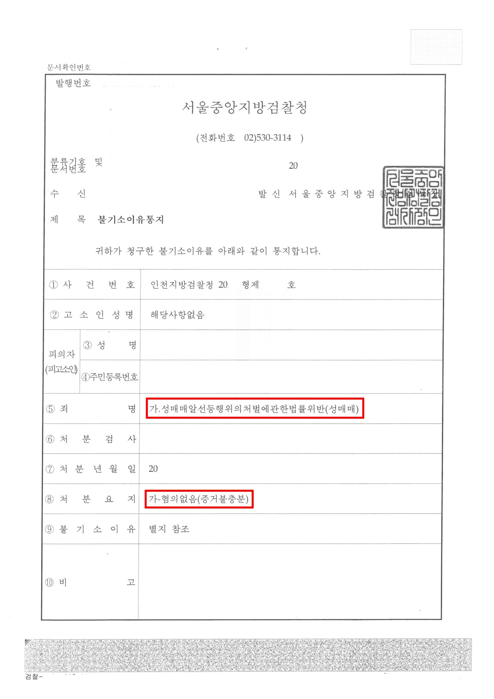 수사기관도 오랜 수사 끝에 본 변호인의 변론 내용을 받아들여 의뢰인의 성매매 혐의에 대하여 혐의없음 처분을 하였습니다.