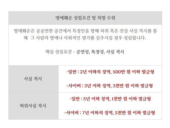 이런 분들을 위해 명예훼손 성립요건 및 처벌 수위에 대해 간략하게 전해드리겠습니다.