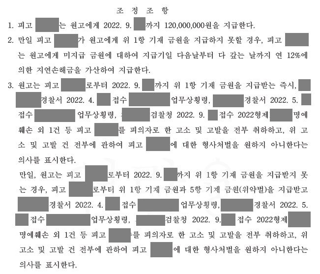 결국 법원에 의해 상대방은 의뢰인에게 1억 2,000만원을 반환하고, 의뢰인은 상대방에 대한 형사 고소 및 고발을 취하한다는 내용으로 조정이 이루어졌습니다. 이로써 의뢰인은 장시간 시달려온 법적 분쟁에서 벗어나는 한편, 억울하게 편취당할 뻔 했던 거액의 투자금을 회수할 수 있었습니다.