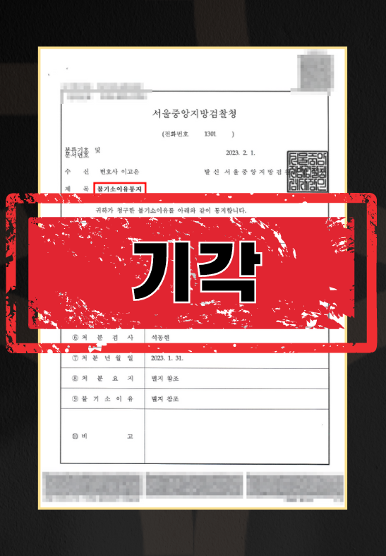 하였습니다. 나아가 검찰사건사무규칙에 따라 의뢰인에 대한 조사 없이 각하 처분이 가능하다는 점을 충분히 어필하였습니다. 그 결과