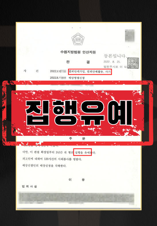 또한 의뢰인이 조직원으로 활동하게 된 배경, 조직원 탈퇴를 원했지만 그럴 수 없었던 사정, 피해액수에 비해 의뢰인이 받은 수익금은 미미한 점 등을 재판부에 최대한 피력하였고, 그 결과 의뢰인은 최종적으로도 집행유예를 선고받아 실형을 면할 수 있었습니다.