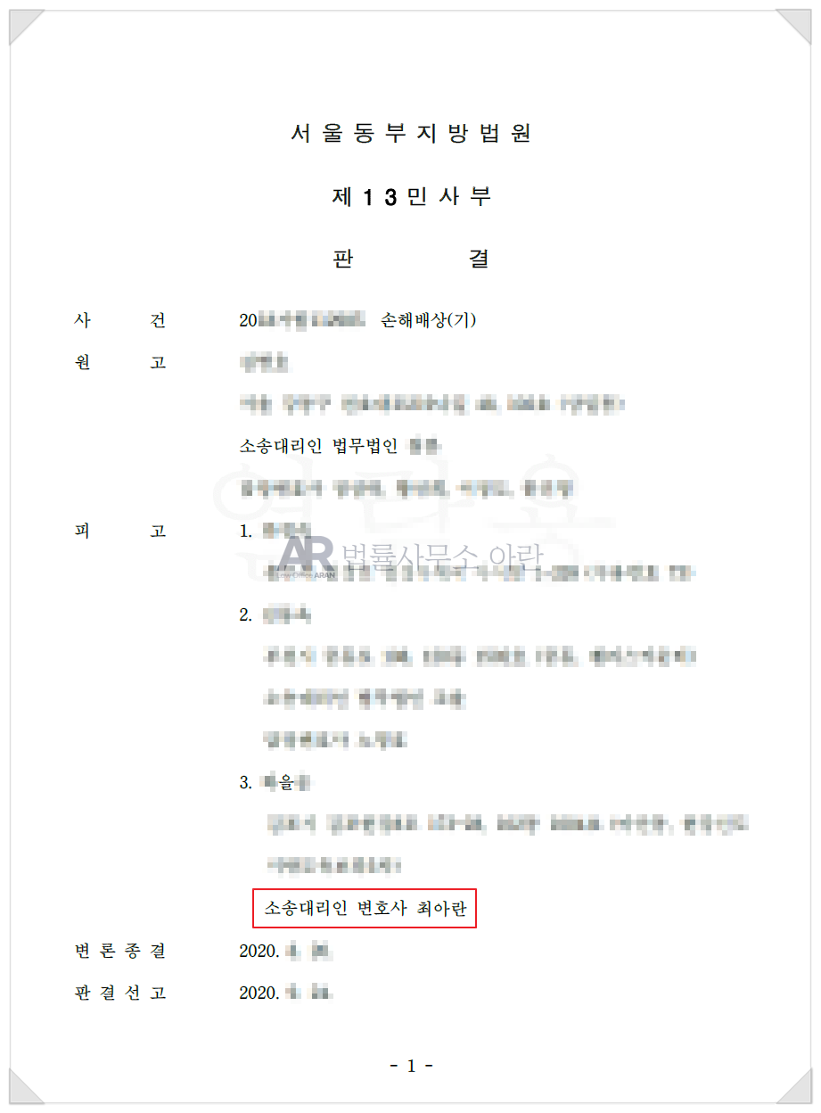 소장을 받아들고 깜짝 놀란 의뢰인은 두 손을 부들부들 떨며 최아란 변호사를 찾아와 손해배상청구를 방어해달라고 의뢰하셨습니다.