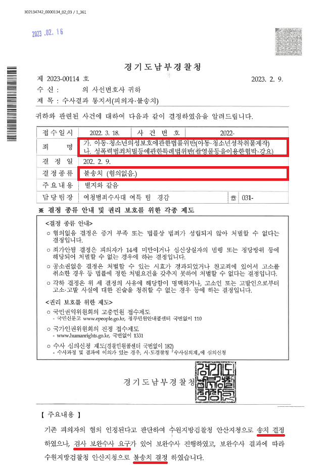 그러자 검찰은 수사가 더 필요하다며 보완수사요구 결정으로 사건을 경찰로 내려보냈습니다. 이에 저는,