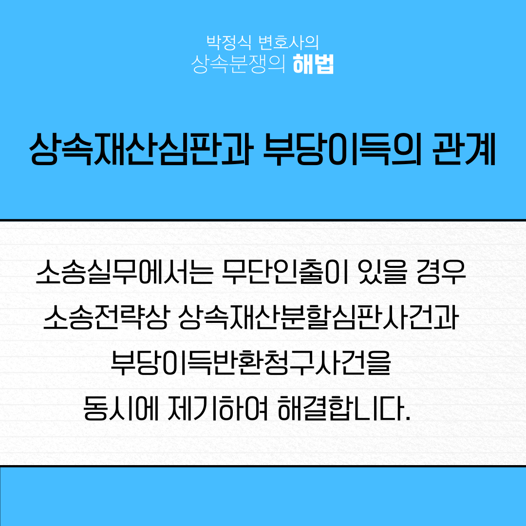 ◇ 소송실무에서는 상속재산분할심판사건과 부당이득반환청구사건을 동시에 제기합니다.