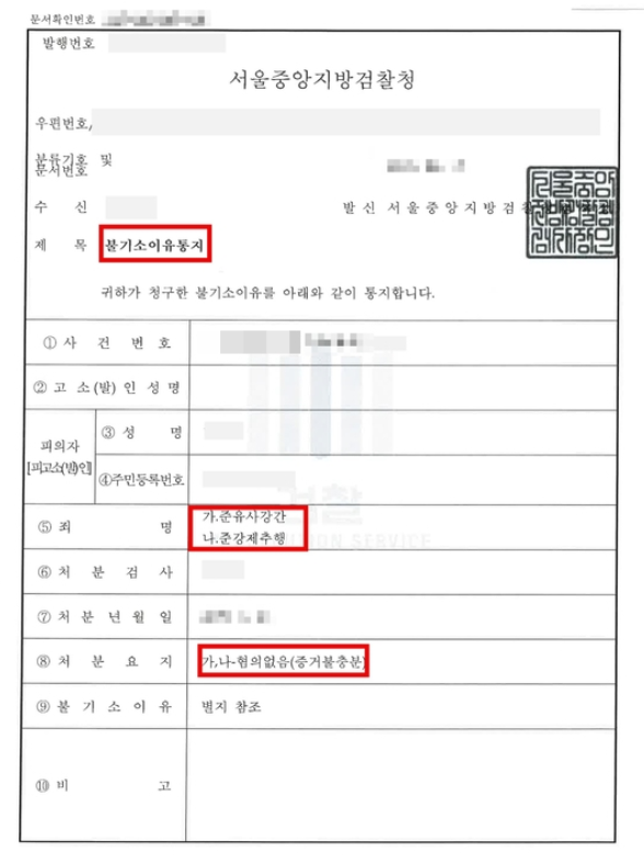 *불기소처분 : 검사가 공소를 제기하지 아니하는 처분 (혐의 없음, 죄가 안됨, 공소권 없음)
