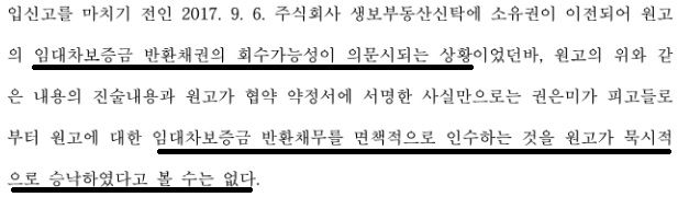 피고는 바로 항소를 하였는데 국내에서 손꼽히는 법무법인을 대리인으로 선임하였습니다. 항소심에서는 채무승인 여부가 쟁점이 되었는데요 당해 재판부는 채무승인 여부는 전세금을 돌려받지 못할 수도 있는 이와 같은 사건에서는 인정하기 어렵다고 판시하였습니다.
