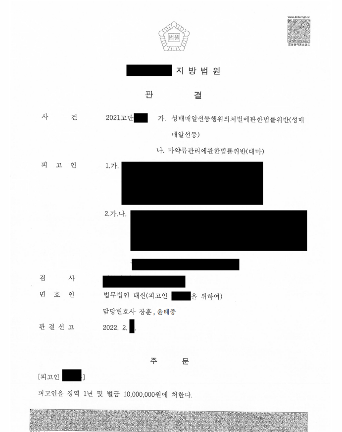 풍부한 사건처리 경험을 갖춘 태신의 조력으로 인해 재판 및 수사과정에서 필요한 양형자료를 신속히 수집할 수 있었고, 이를 기초로 재판부에 적절히 호소하고, 확정된 동종사건과의 상관관계를 적절히 설명한 끝에 비교적 경한 처벌을 받을 수 있었으며, 의뢰인은 구속을 면할 수가 있었습니다.