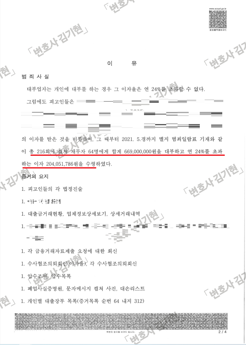 대부업체를 운영하며 수십억 원 이상의 돈을 대부하고 연 300%를 초과하는 이자를 수령한 혐의로 기소된 대부업자 사건입니다.
