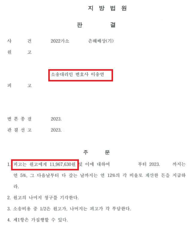 (참고로 소장을 받아본 피고측에서 100만 원에 소외 합의 또는 조정을 진행하자고 연락이 왔지만, 의뢰인이 입으신 피해에 현저히 못미치는 금액이었던지라, 피고측의 제안을 거절하고 위와 같은 주장을 유지하였습니다)