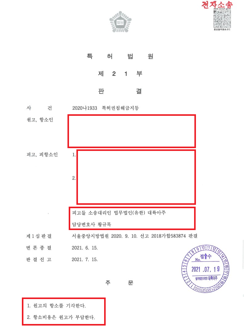 ![[특허침해, 부정경쟁행위] 전부기각 승소사례 (1, 2심)](/_next/image?url=https%3A%2F%2Fd2ai3ajp99ywjy.cloudfront.net%2Fuploads%2Ftitleimage%2Foriginal%2F5b7bb74455ed6477716e1490-original.jpg&w=3840&q=75)