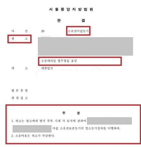 결국, 이러한 김진형 변호사의 주장이 받아들여져 법원의 판단을 살펴보면 이 사건 각 토지의 사정명의인은 원고(의뢰인)의 선대라고 봄이 타당하고 이 사건 각 토지를 순차 상속한 공유자의 1인으로서 그 공유물의 보존행위로서 구하는 원고(의뢰인)에게 위 각 소유권보존등기의 말소등기절차를 이행할 의무가 있다며 위 판결을 받았습니다.
