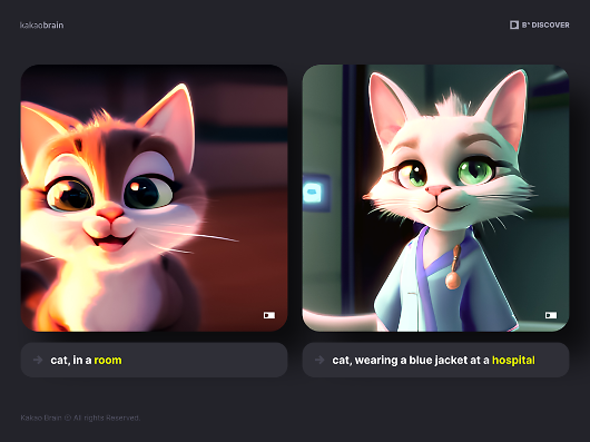 생성 인공지능(AI) 서비스에 특정 프롬프트를 입력하면 딱 들어맞는 이미지를 얻을 수 있다. 다만 주요 생성 AI 서비스의 경우 이용자가 음란물을 만들 수 없게 필터링 기술을 적용한다. 사진은 카카오브레인의 생성 AI 비디스커버에 고양이 관련 프롬프트를 입력한 결과. 카카오브레인