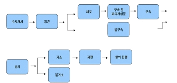 크게, 수사가 개시되면 경찰조사를 그리고 1차적으로 혐의가 인정된다는 판단이 들면