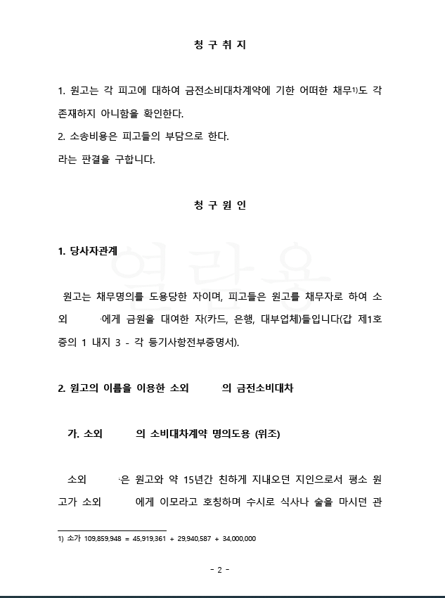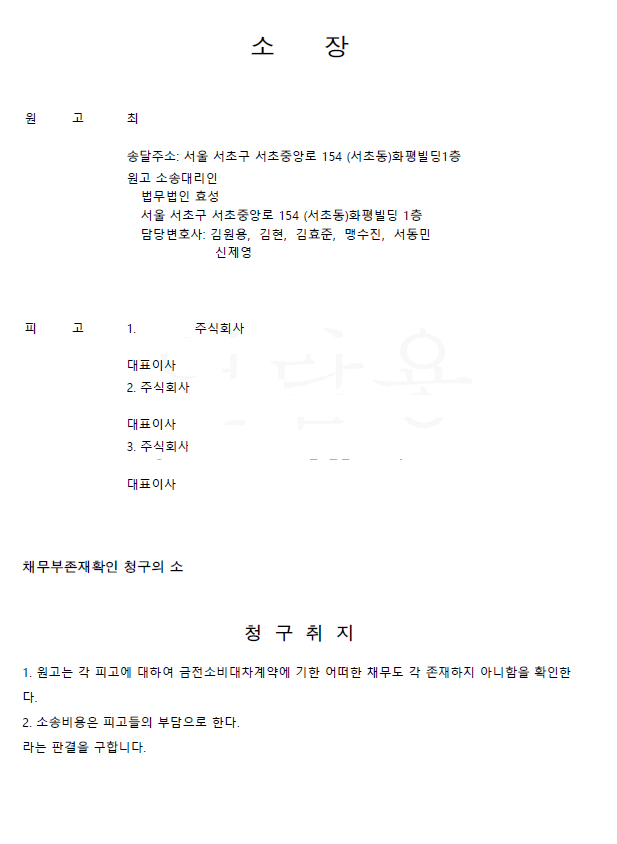 이 사건 역시 의뢰인이 명의를 도용당하여 각 금융기관으로부터 채무를 지게 되었는데 소송을 통해 채무에서 벗어나게 된 경우입니다.