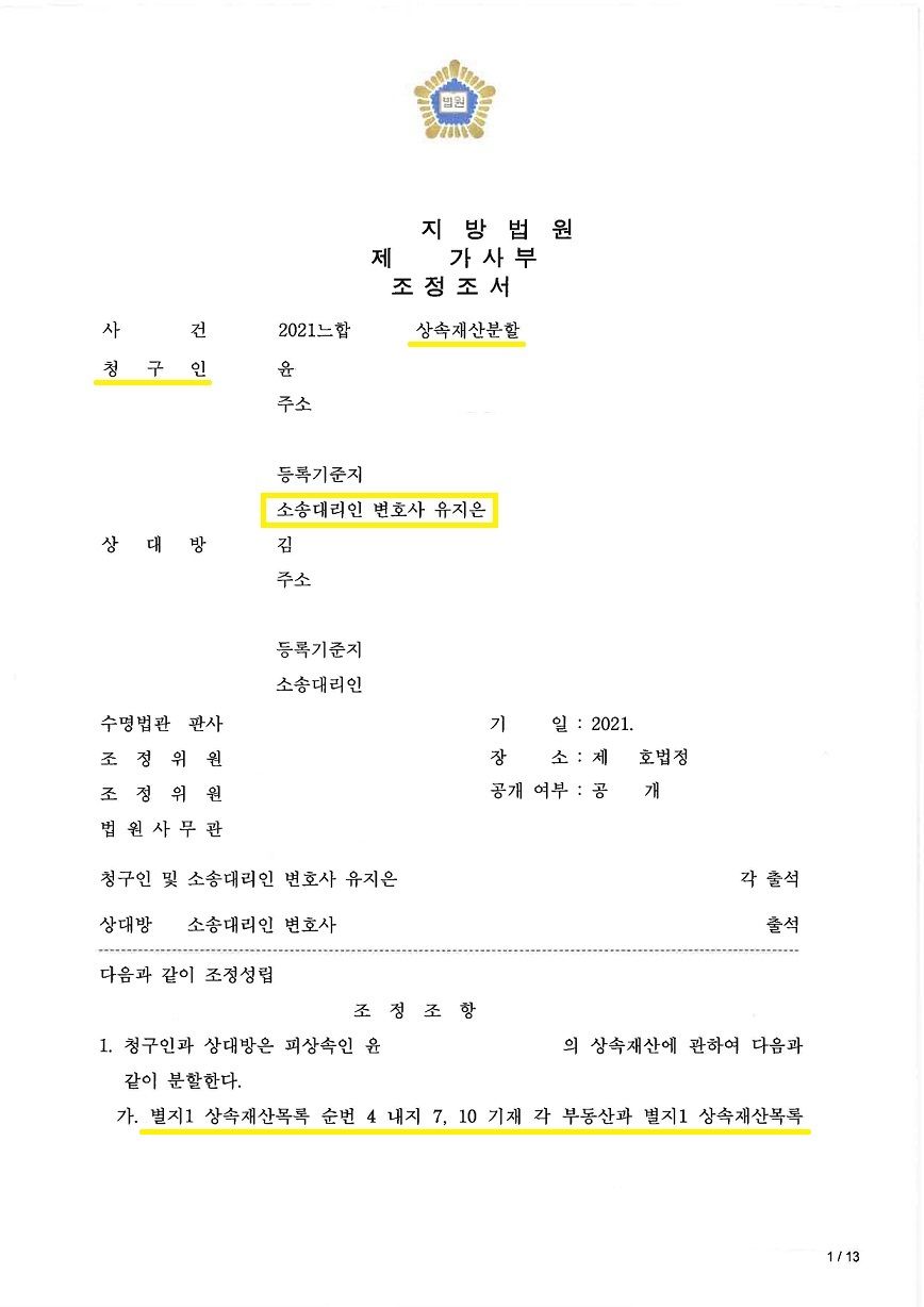 결국, 남아있는 상속재산 가운데 원하는 부동산들과 차량을 단독소유로 분할받아 올 수 있었으며, 나머지 채권과 채무는 법정상속분대로 상속받으며 의뢰인이 원하는 대로 성공적으로 마무리가 된 사안입니다.