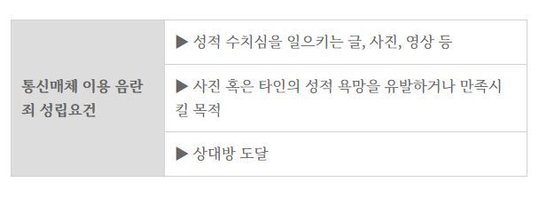 통신매체이용음란죄(통매음)이 성립하기 위해서는 요건이 필요합니다.