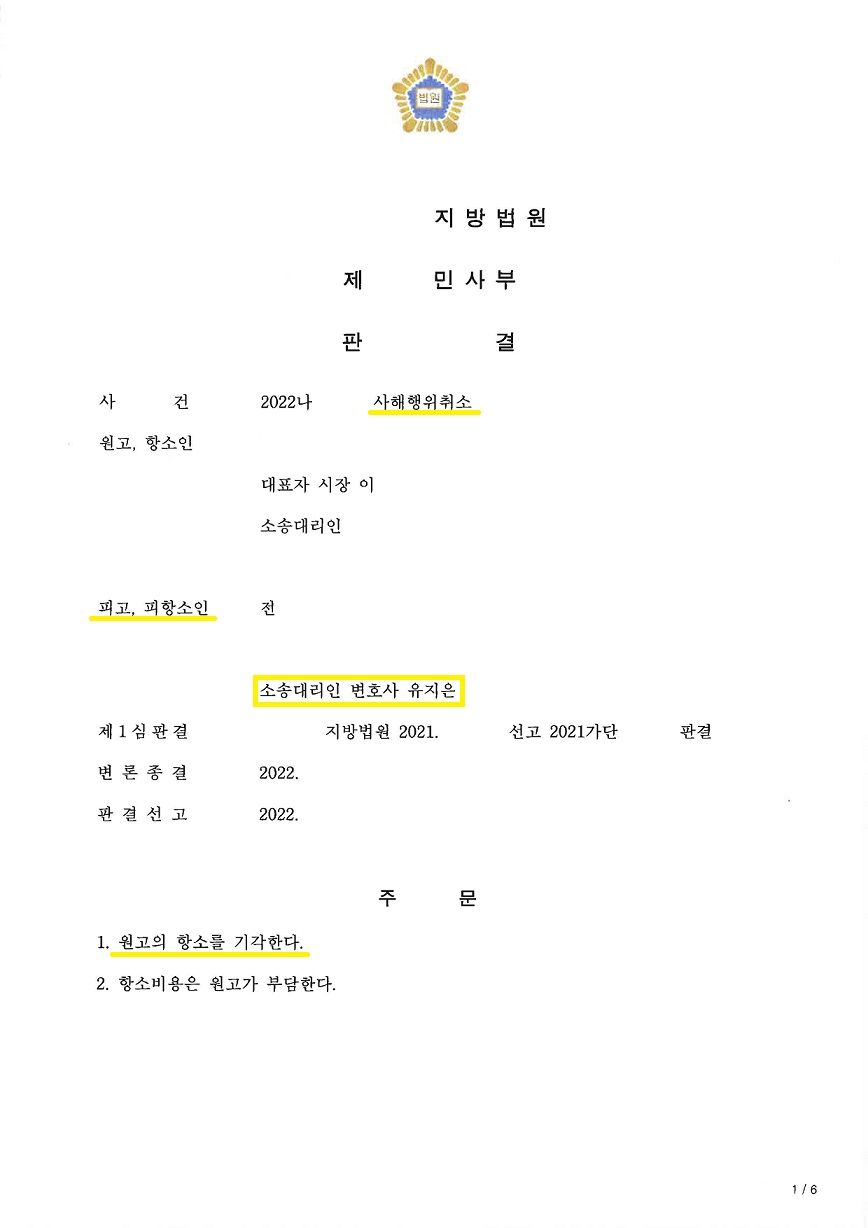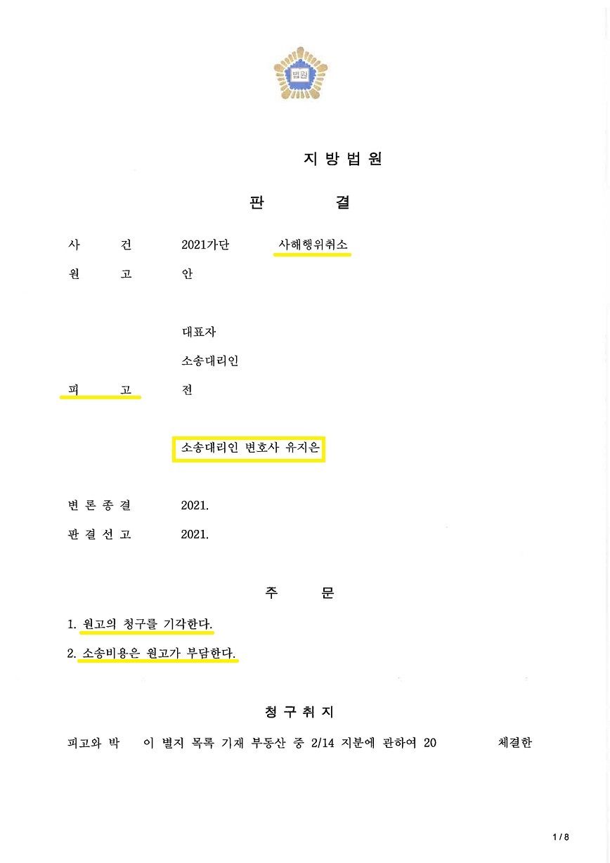 시에서는 상속재산분할협의를 통해 채무자의 지분을 의뢰인에게 이전한 것은 사해행위에 해당하므로 협의가 취소되어야 한다고 적극 다투었고, 이에 저희는 수익자인 의뢰인에게 사해의사가 전혀 없었다는 것을 증명하기 위해 노력하였습니다.
