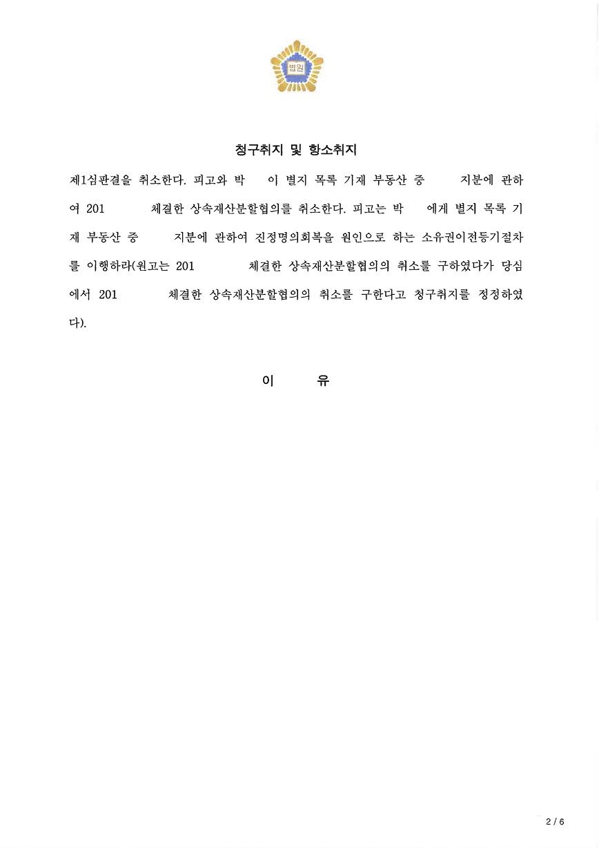 이미 채무초과 상태에 있는 채무자가 상속재산의 분할협의를 하면서 자신의 상속분에 관한 권리를 포기하는 행위는 원칙적으로 사해행위에 해당하며, 수익자의 악의는 추정되므로 이와 같은 경우에 원고의 청구를 기각시키는 것은 매우 어려운 일임에도 저희는 수익자의 선의를 적극 증명함으로써 원고의 청구를 기각시켰습니다. 원고는 이에 불복하여 항소하였으나 항소심에서도 저희는 의뢰인을 적극 방어하여 원고의 항소 또한 기각시키고 소송비용까지 돌려받으며 성공적으로 마무리한 사안입니다.