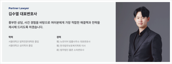 저희 로펌은 자료 정리, 절차적인 부분을 제외하고 법적인 판단이 필요한 서면 작성 등의 업무는 변호사들이 직접 처리하고 있으며 대표 변호사가 직접 모든 업무를 총괄하고 있습니다.