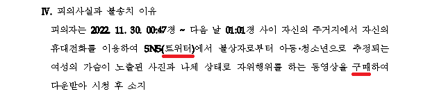 제11조(아동ㆍ청소년성착취물의 제작ㆍ배포 등) ⑤ 아동ㆍ청소년성착취물을 구입하거나 아동ㆍ청소년성착취물임을 알면서 이를 소지ㆍ시청한 자는 1년 이상의 징역에 처한다.