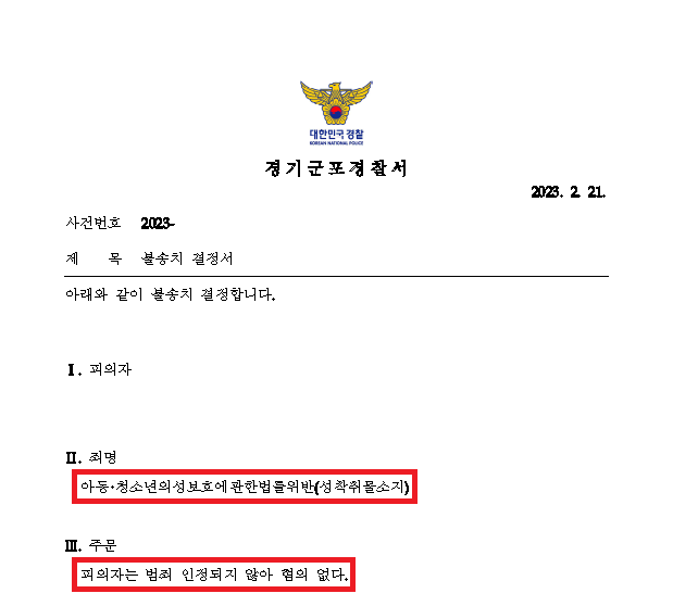 이러한 저의 조력을 바탕으로 A씨는 '불송치(혐의없음)' 결정을 받음으로써 일생일대의 위기 상황에서 빠르게 벗어날 수 있었습니다.