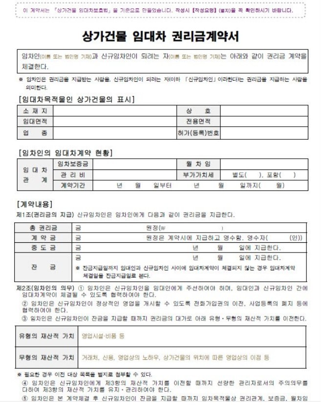 따라서 권리금 양도양수계약서에는 신규임차인의 임대차 조건까지 명시하는 것이 좋습니다.