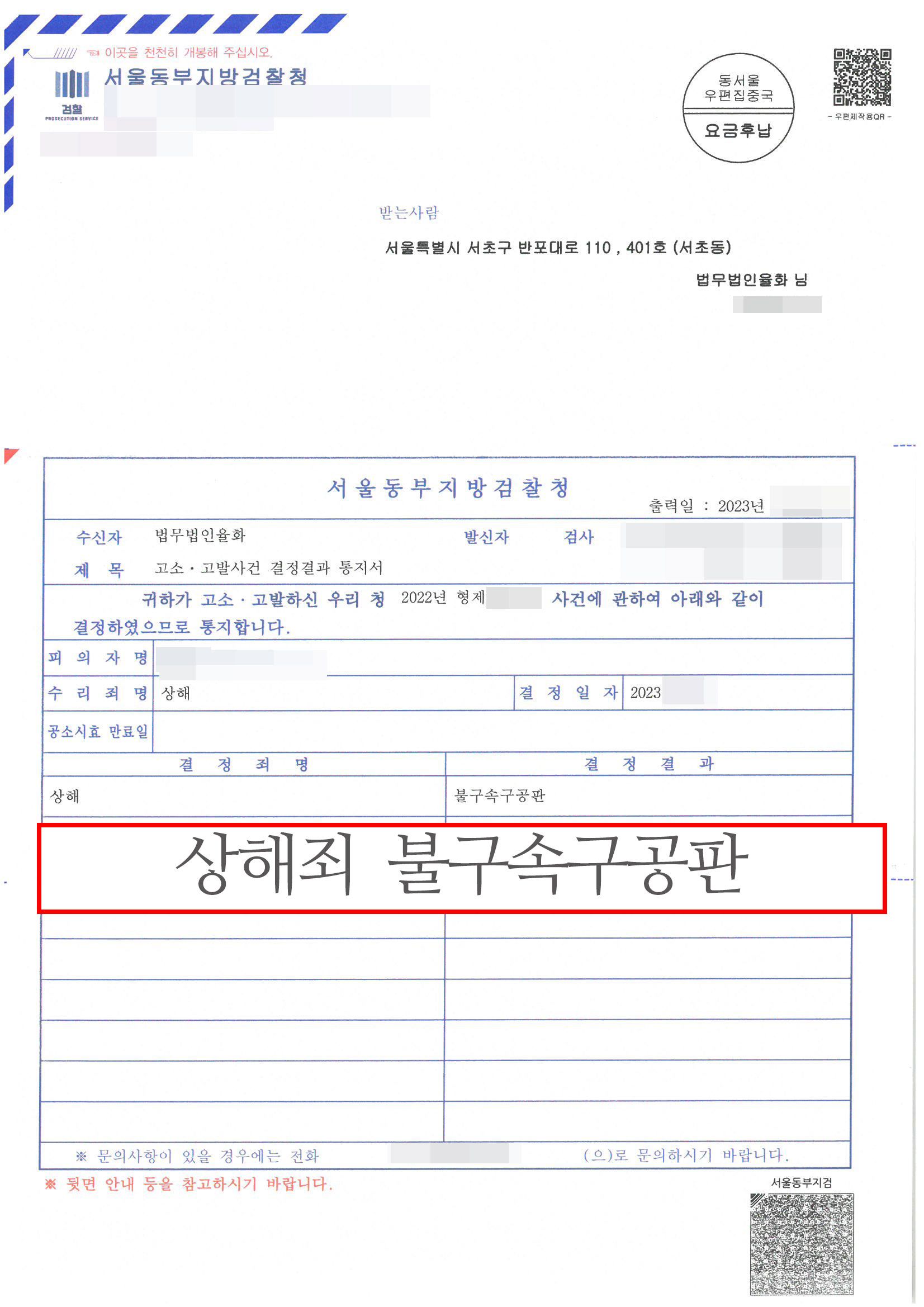 그래서 피의자를 기소의견으로 검찰에 송치하였고, 검찰에서도 피의자에게 명백한 혐의가 있다고 판단해 불구속구공판결정을 내렸습니다.