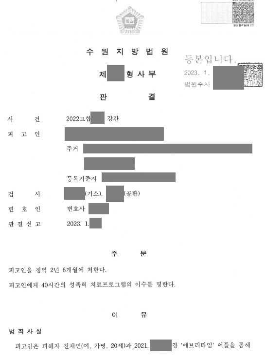 법원은 피해자에 대한 증인신문까지 마친 다음 가해자에게 징역 2년 6월의 실형을 선고하였습니다. 얼핏 보기엔 피해자에게 불리해 보이는 정황이 있음에도 피해자 진술의 신빙성을 인정받고 반대로 가해자 진술의 신빙성을 탄핵해서 실형까지 선고받게 한 사건이었습니다. 덕분에 피해자는 자신의 피해를 수차례 되풀이하여 진술해야 하는 고통에서 벗어나 가해자를 엄벌에 처할 수 있었고, 현재 피해자는 가해자에 대한 민사소송을 진행하고 있습니다.