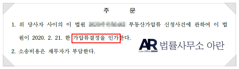 최아란 변호사는 가장 먼저 와이프가 단독으로 소유하고 있는 위 아파트에 대한 가압류를 신청하였습니다.