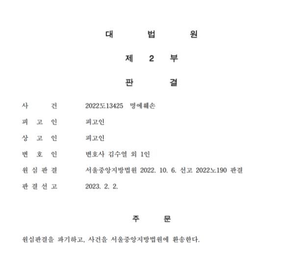 3. 최종 결과 - 명예훼손 대법원 무죄 판결