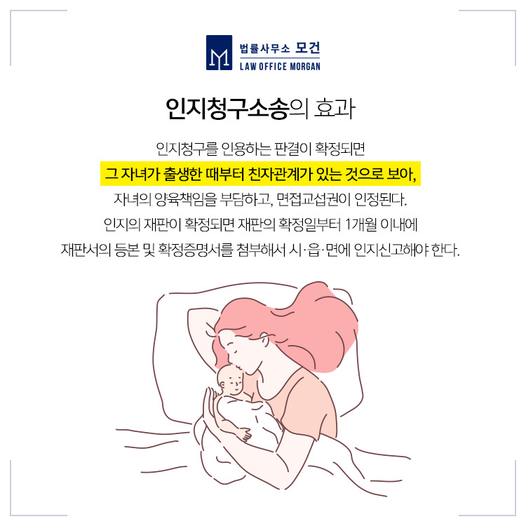 법률사무소 모건의 이다슬 대표 변호사는 대한변호사협회등록 이혼전문변호사이자 인지청구소송, 친생자관계존부확인소송 등 친자관계를 정립하는 소송에 대한 전문성있는 상담과 대리를 진행하고 있습니다. 본인의 상황에 맞는 소송이 다를 수 있으니, 구체적인 상담이 필요하신 분들은 법률사무소 모건으로 문의해주세요.