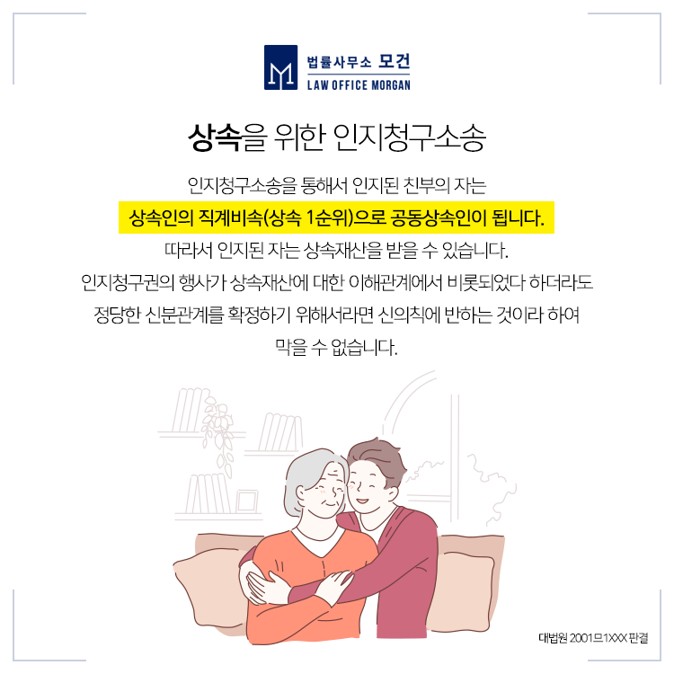 한편 부친이 사망한 경우에도 상속을 위해 인지청구소송을 진행하는 경우가 있는데, 이경우에는 검사를 피고로 하여 부친의 사망사실을 안 날로부터 2년 이내에 인지청구소송을 제기하셔야 합니다.