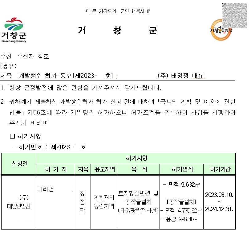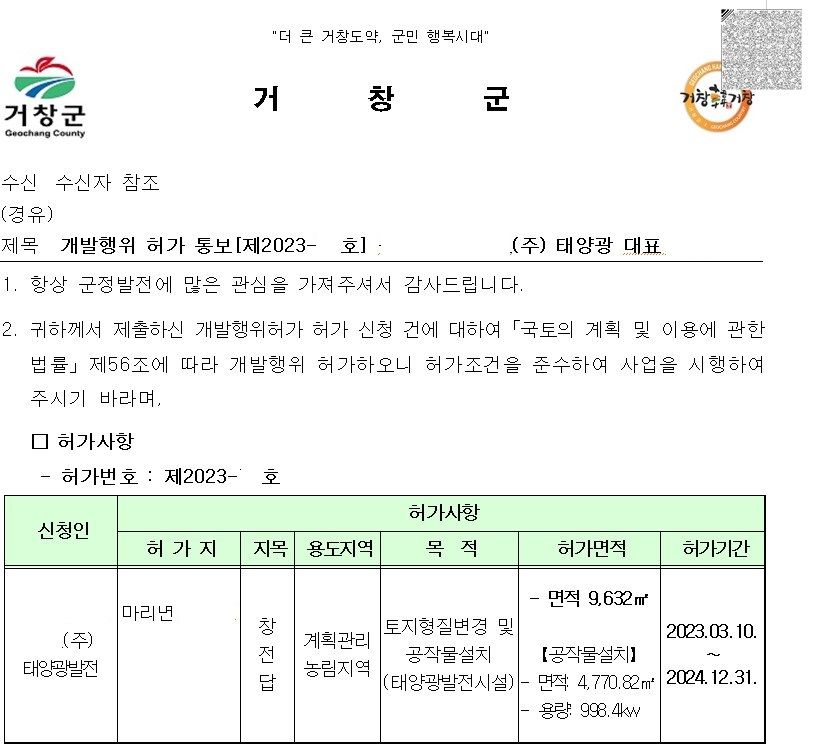 이러한 부분이 받아들여져 해당 신청에 대해 허가결정이 내려졌고, 의뢰인은 순조로이 태양광 개발행위를 시작할 수 있게 되었습니다.