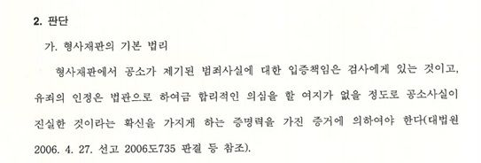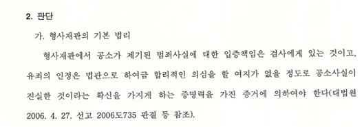 유죄 인정은 합리적인 의심을 넘어서 입증해야 한다. 너무도 당연한 법리지만 수많은 사건을 거치다 보면 실제로는 잘 지켜지지 않는다는 느낌을 받게 되는 바로 그 법리를 재판장님께서 다시 한번 짚어주셨습니다.