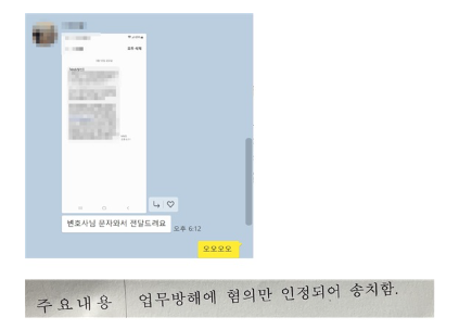 의뢰인 분께서 원하셨던 대로 공문서변조 및 동행사 부분은 불송치되고, 업무방해만 인정되어 송치되었습니다.
