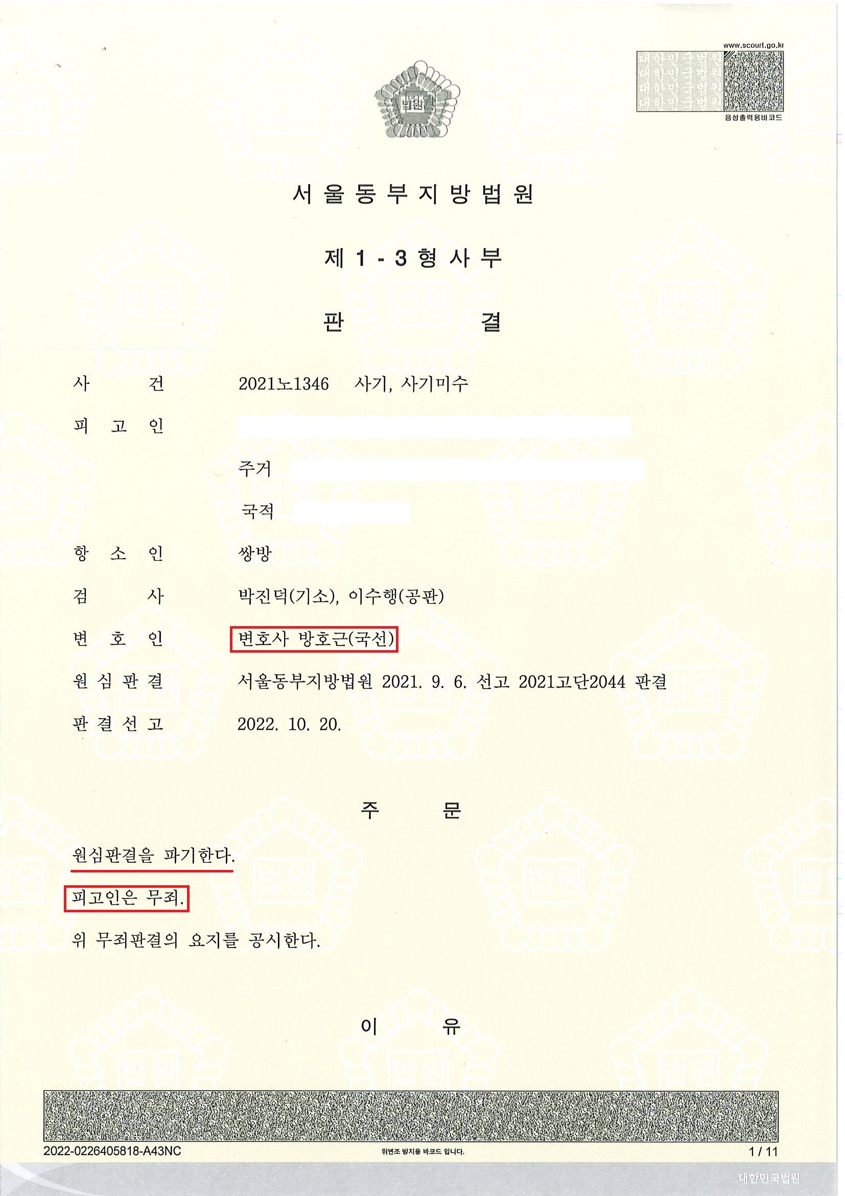 방변은 피고인의 항소심 국선변호인으로 선정되어 피고인의 억울함을 풀어주기 위해 노력하였습니다.