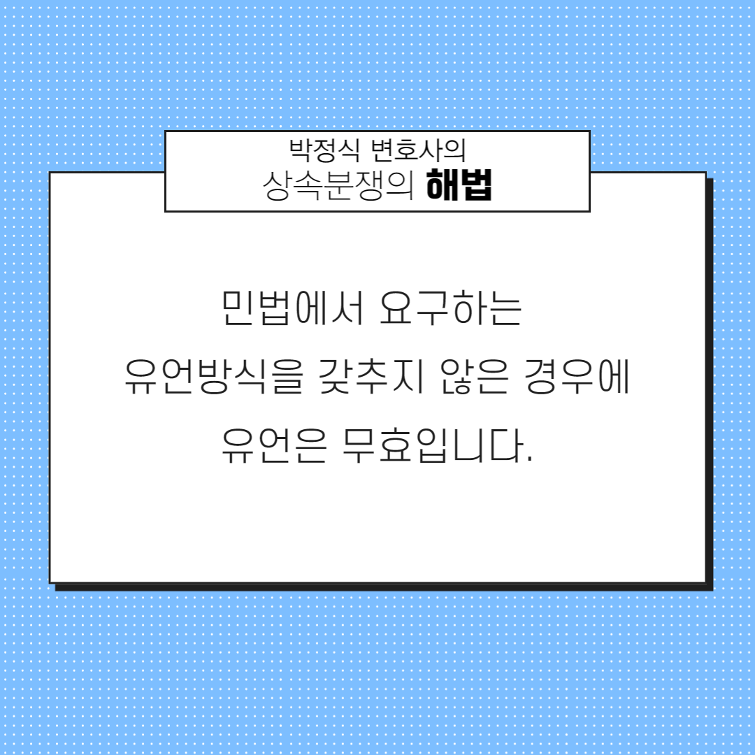 유언서가 작성되어 있으나, 민법에서 요구하는 유언방식이 갖추어져 있지 않는 경우에 그 유언은 무효입니다.