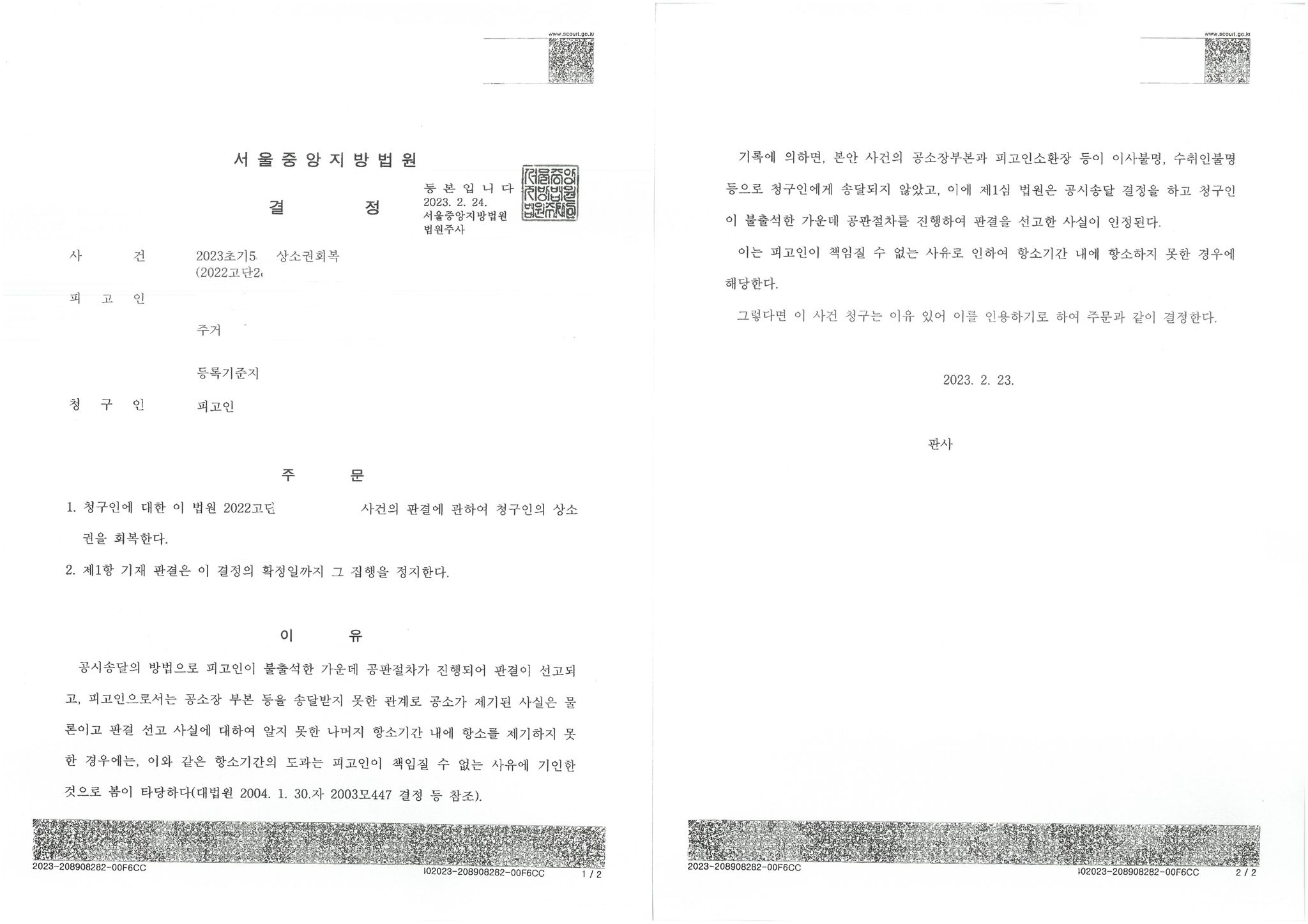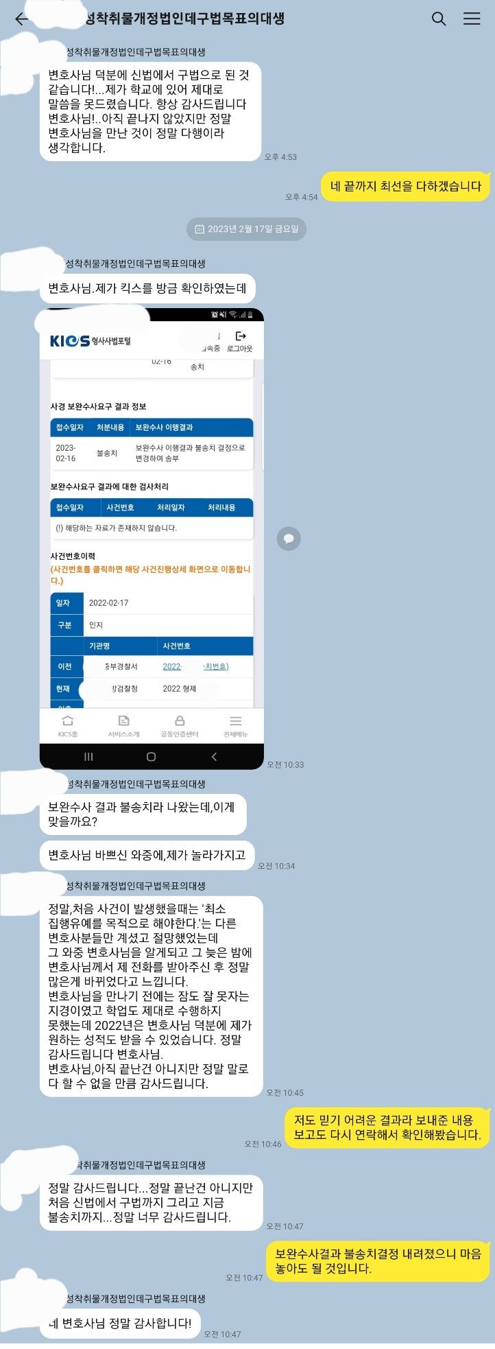 어제도 상소권회복청구가 당일 인용되고 서울구치소에서 심문기일 당일 저녁에 바로 석방되는 기쁜 일이 있었습니다.