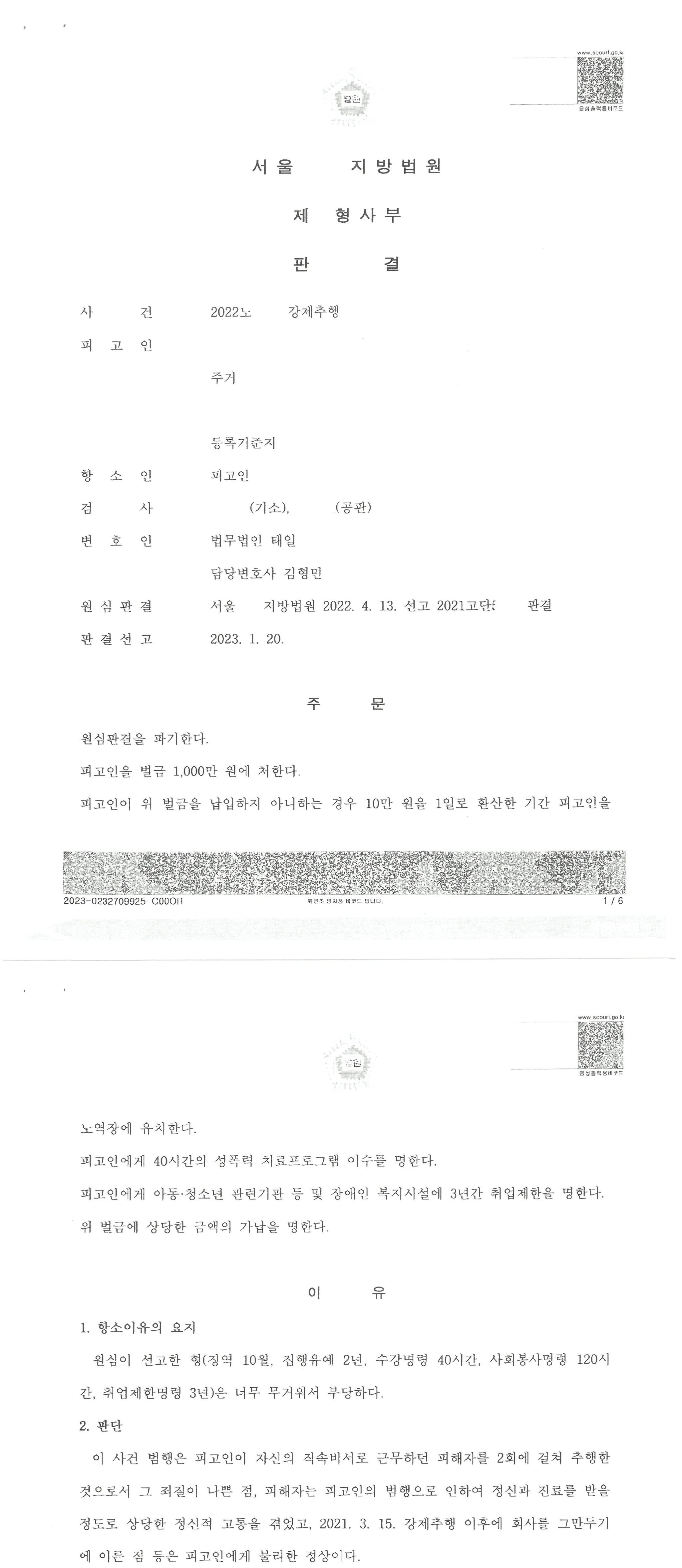 심문기일 즉일에 인용되고 바로 저녁에 서울구치소에서 석방되었습니다. 이 사건의 항소심은 무죄판결 가능성이 매우 높다고 판단되는데 향후 무죄판결이 선고되면 포스팅에서 소개하도록 하겠습니다.