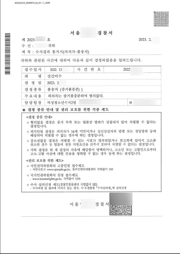 혐의 없음의 불송치 결정 - 증거불충분