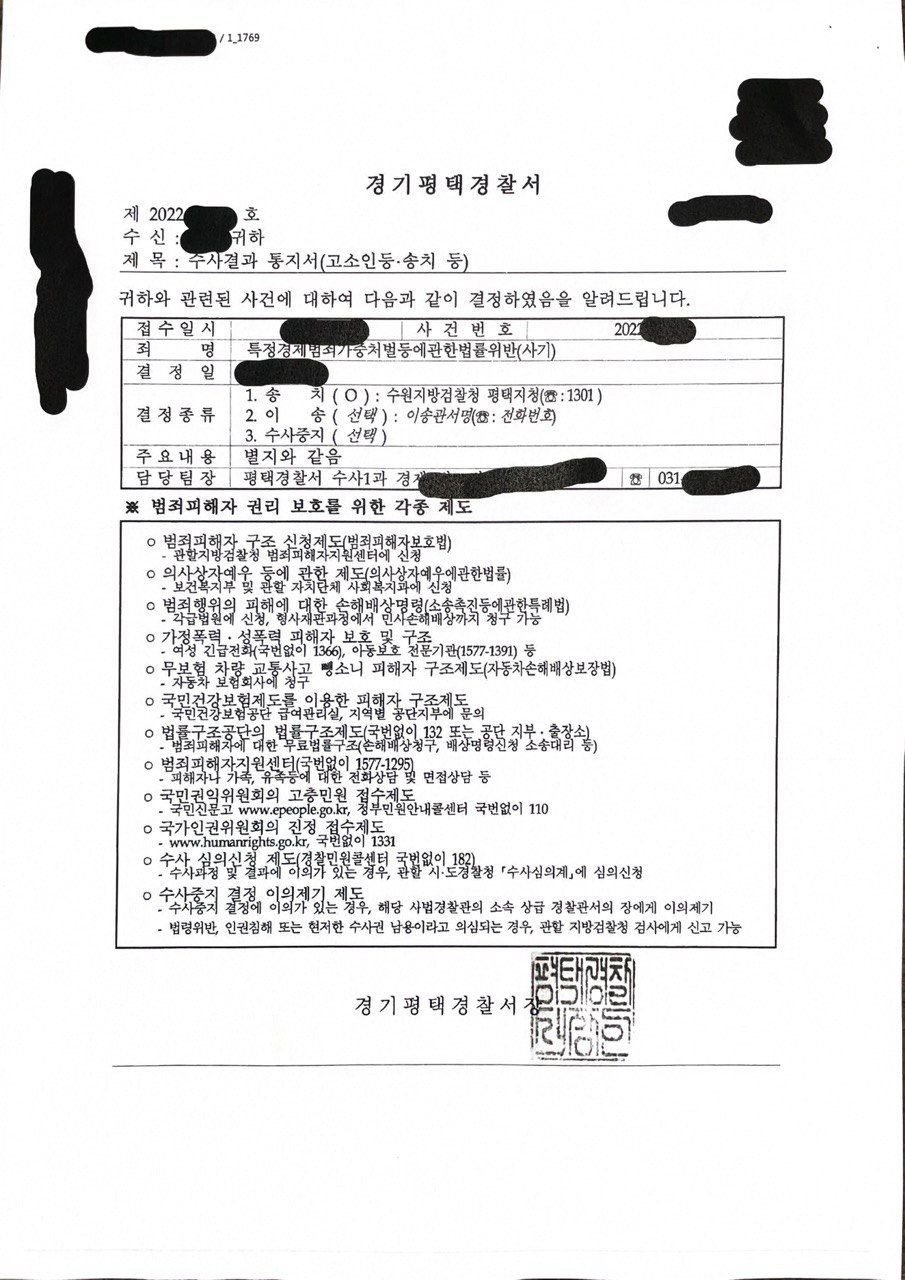 수사한 결과 피고소인의 혐의가 인정되어, 기소의견으로 송치되었습니다.