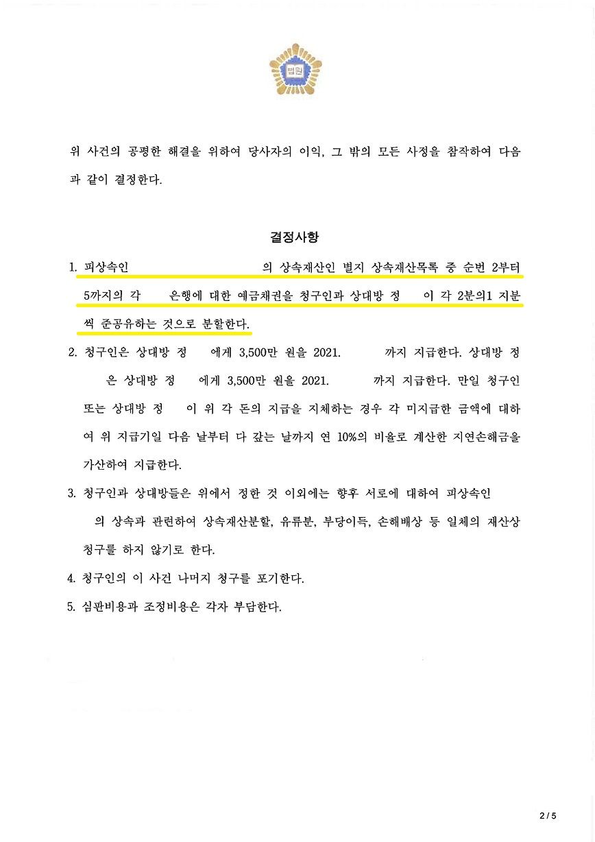 그 와중에 저희는 동생이 어머니 생전에 상당한 재산을 특별 수익한 것을 사실조회를 통해 확인하였고, 이에 조정기일에 저희에게 유리한 합의안을 도출할 수 있었습니다.