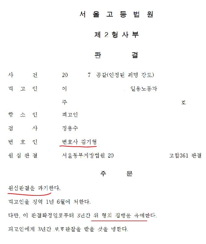 항소심에서 집행유예 판결을 이끌어 낸 사례