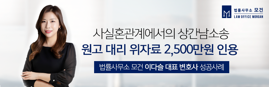 법률사무소 모건의 이다슬 대표 변호사는 대한변호사협회등록 이혼전문변호사로서, 배우자의 외도이혼, 상간녀소송 등에 특화된 법률서비스를 제공하고 있습니다. 특히 다수의 상간녀소송, 상간남소송에서 원고와 피고 모두를 대리해오면서 축적한 전문성과 노하우를 바탕으로 주목할만한 승소사례를 만들어가고 있습니다. 구체적인 상담이 필요하신 분들은 법률사무소 모건으로 문의하시기 바랍니다.