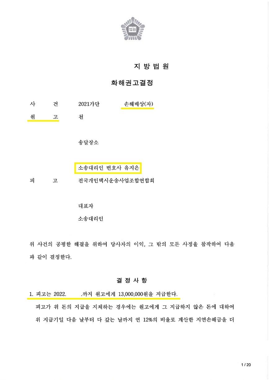 상대방은 소를 제기하기 전까지 합의금을 줄 수 없다는 입장이었는데, 다행히 1,300만 원을 지급하는 것으로 합의하며 성공적으로 마무리된 사안입니다.