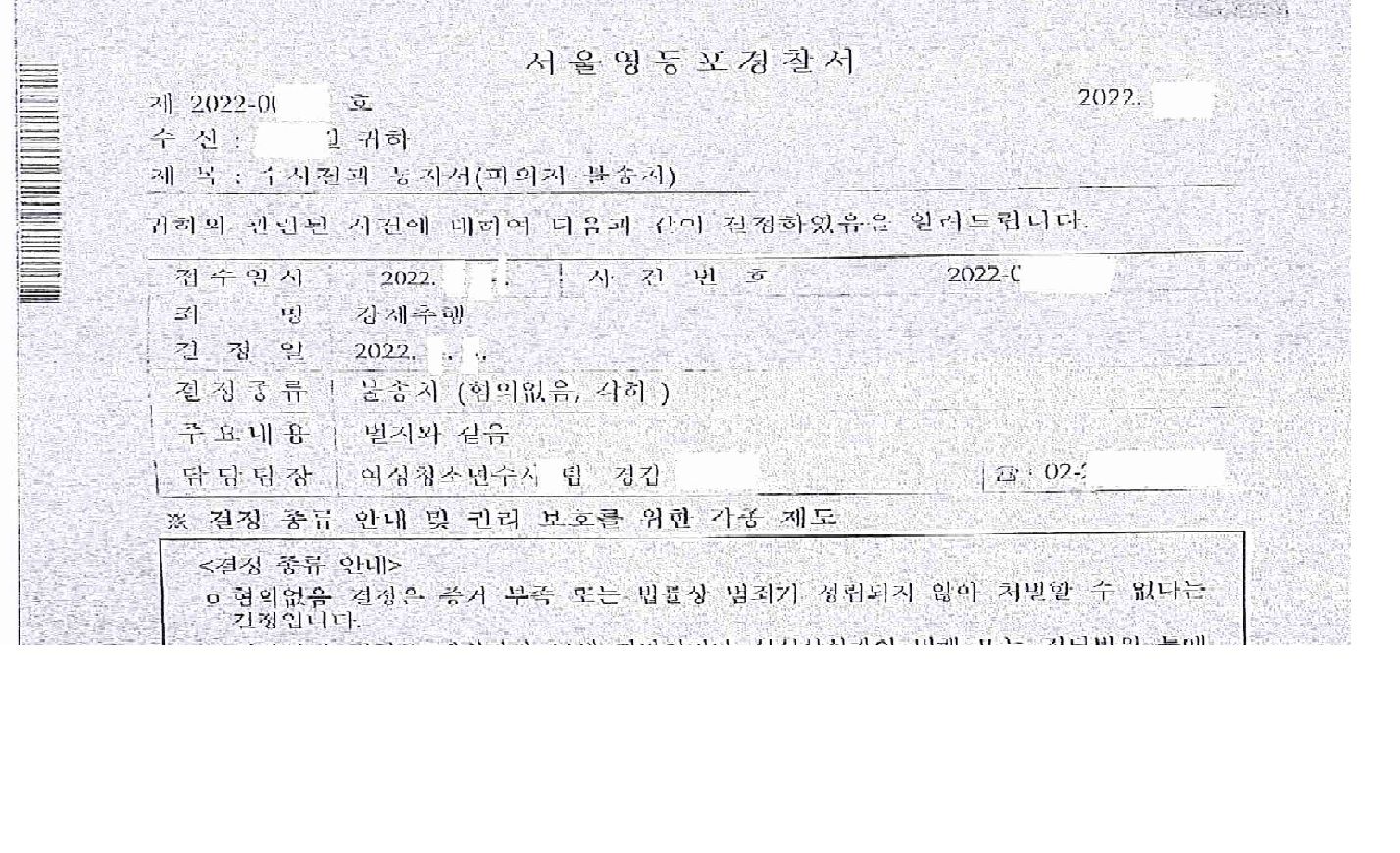 불송치 혐의없음 성공