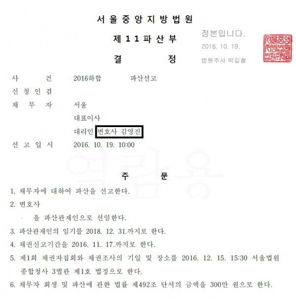 4. 채무자 회사가 파산선고에 이르게 된 경위